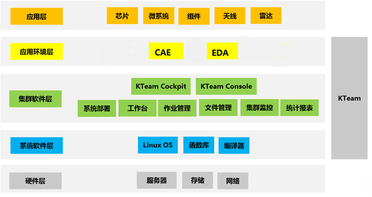 KTeam是基爾科技自主研發(fā)的高性能協(xié)同設(shè)計仿真軟件平臺,可實(shí)現(xiàn)設(shè)計與計算集群資源統(tǒng)一部署、使用、瀏覽、管理、監(jiān)控和統(tǒng)計等,可大幅提高仿真效率,簡化平臺管理。KTeam由應(yīng)用工作臺、作業(yè)調(diào)度模塊、文件管理模塊、集群監(jiān)控模塊、資源統(tǒng)計模塊組成。選用KTeam及其相關(guān)服務(wù),可以幫助用戶部署操作系統(tǒng),安裝和測試集群軟件以及應(yīng)用環(huán)境,基于高性能集群硬件設(shè)備,提供傳統(tǒng)的設(shè)計環(huán)境和高速的仿真體驗(yàn)。